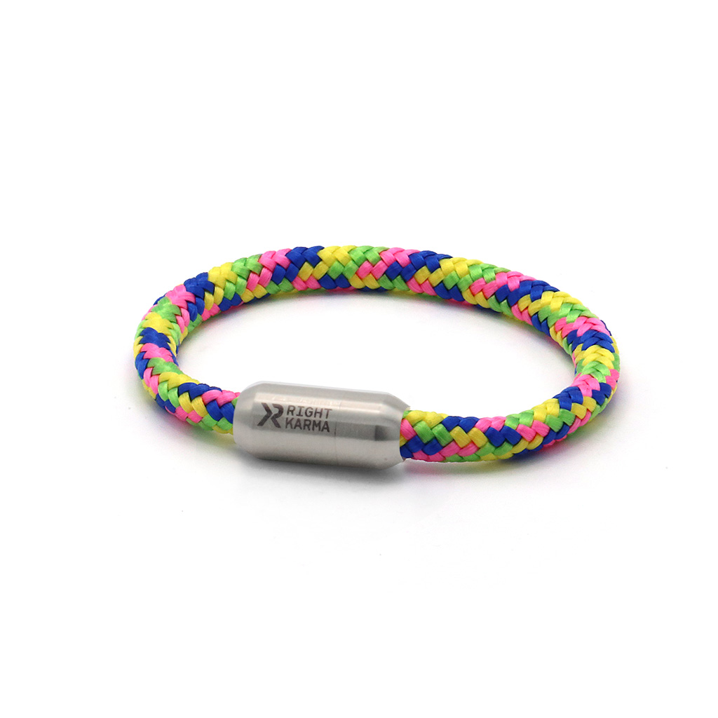 Armband 80ies vintage aus unserer Armband Kollektion back to the 80ies mit hochwertigem 6mm Segeltau sowie starkem Magnetverschluß. Vollständig konfigurierbar. Liebevoll handgefertigt für dich in Deutschland. Armband bunt aus Segeltau mit Magnetverschluss in Schwarz, Blau, Silber oder Gold. Für 80er Jahre-Fans und Fans bunter Farben. Ideal auch als Freundschaftsarmband und als Geschenkidee.